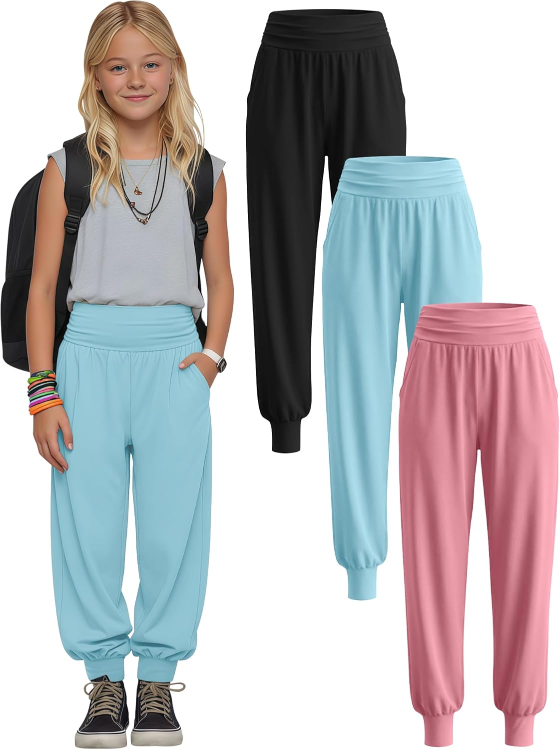 Features: High waisted pants with pockets: Our youth girls' clothes are made of comfortable fabric and are ideal for school-age children aged 5-14. They are suitable for various occasions, whether for school or sports. Easy care: Washer and dryer safe. Recommend to wash in cold water and tumble dry low or line dry. Specifications: Material: 60% Polyester, 35% Rayon, 5% Spandex Package Includes: 3 x Girls' pants with pockets Notes: Manual measurement, please allow slight errors on size. The color may exist a slight difference due to different screen displays