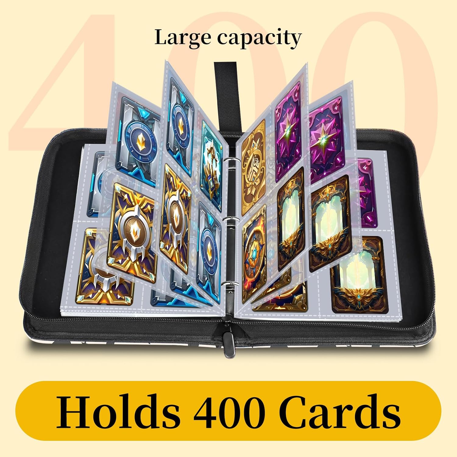 Organize and protect your collection with this four pocket card binder designed for collectors of all ages. With a capacity of up to four hundred cards, it provides an efficient way to store, display, and manage your cards in one place. Whether used as a trading card binder or a photocard binder, it helps keep your collection neat and easy to access.This card collection binder includes fifty removable sleeves, allowing you to customize the layout based on your needs. The flexible page design makes it easy to rearrange or expand your collection over time. A smooth zipper closure adds an extra layer of protection, helping prevent cards from bending, dust exposure, or accidental loss during transport.Lightweight and portable, this zipper binder works well as a daily card organizer at home or on the go. The cute and practical design makes it suitable for storing trading cards, photo cards, and other collectibles. Whether you are a casual collector or a dedicated enthusiast, this binder offers a reliable and stylish solution for organizing and protecting your cards.