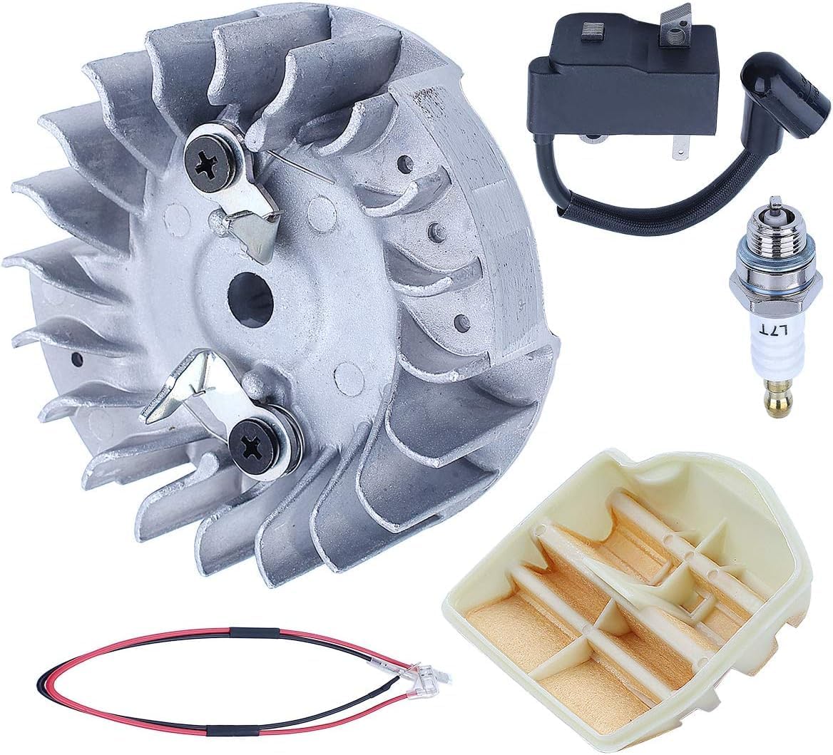 Replace OEM NO.:544111801, 573935701, 504571401, 544080803 Fits Husqvarna 445 445E 450 450E chainsaw Package Included: 1 x Flywheel 1 x Ignition Coil 1 x Air Filter 1 x Spark Plug