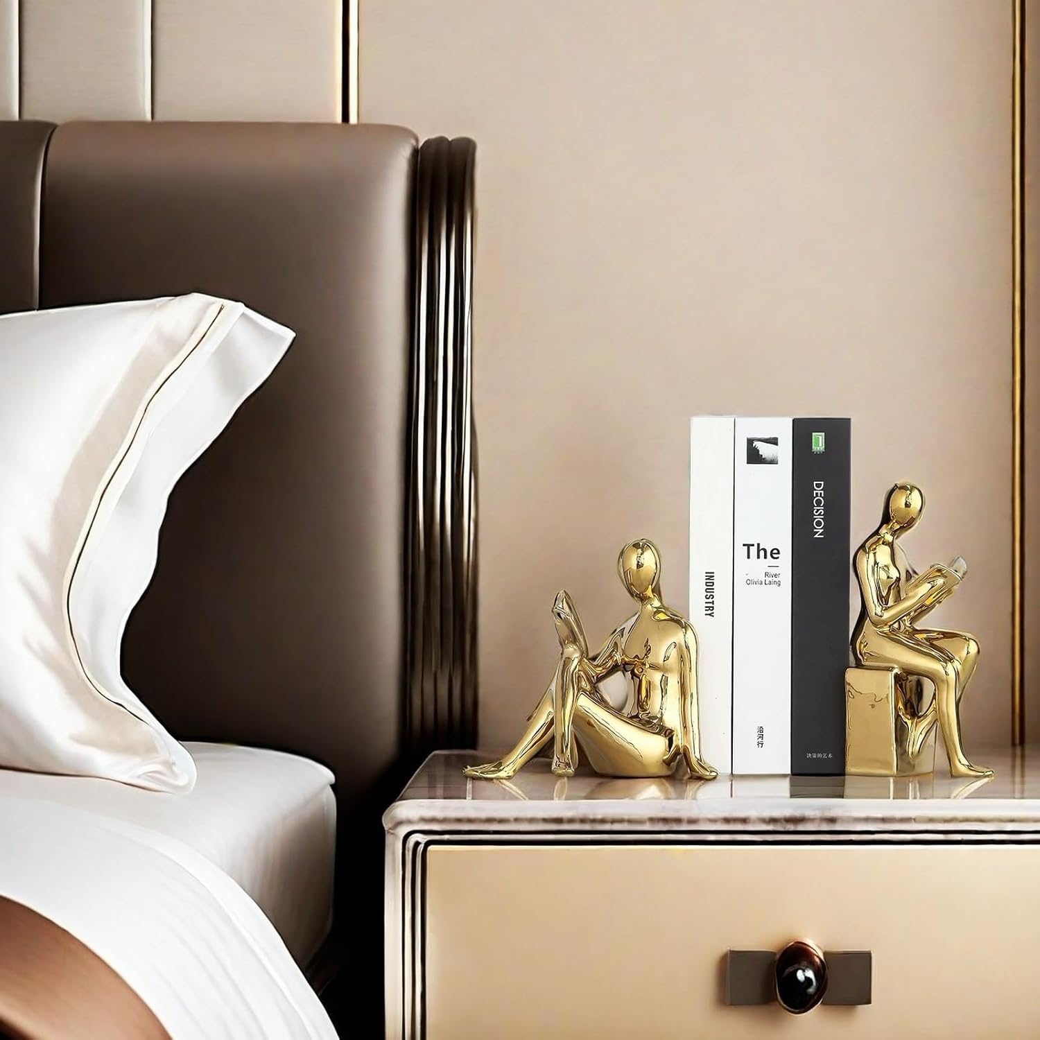 Dimensions: one about 7x3.6x6.5 Inch, the other one about 4x2.5x8 Inch, providing ample support for your book collection.Elevate your home decor with this elegant reading couple statue bookend set. Crafted from high-quality ceramic, these bookends effortlessly blend form and function. The intricate lifelike poses of the reading figures create a captivating focal point on your bookshelf, office desk, or living room display. Not only do they hold your books in place with style, but they also serve as charming decorative accents. With their timeless design, these bookends complement various interior styles, from traditional to contemporary. Measuring approximately 6.5 inches and 8 inches tall, they offer a perfect balance of size and presence. Enhance your space with this delightful reading couple statue bookend set and add a touch of sophistication to your home or office.