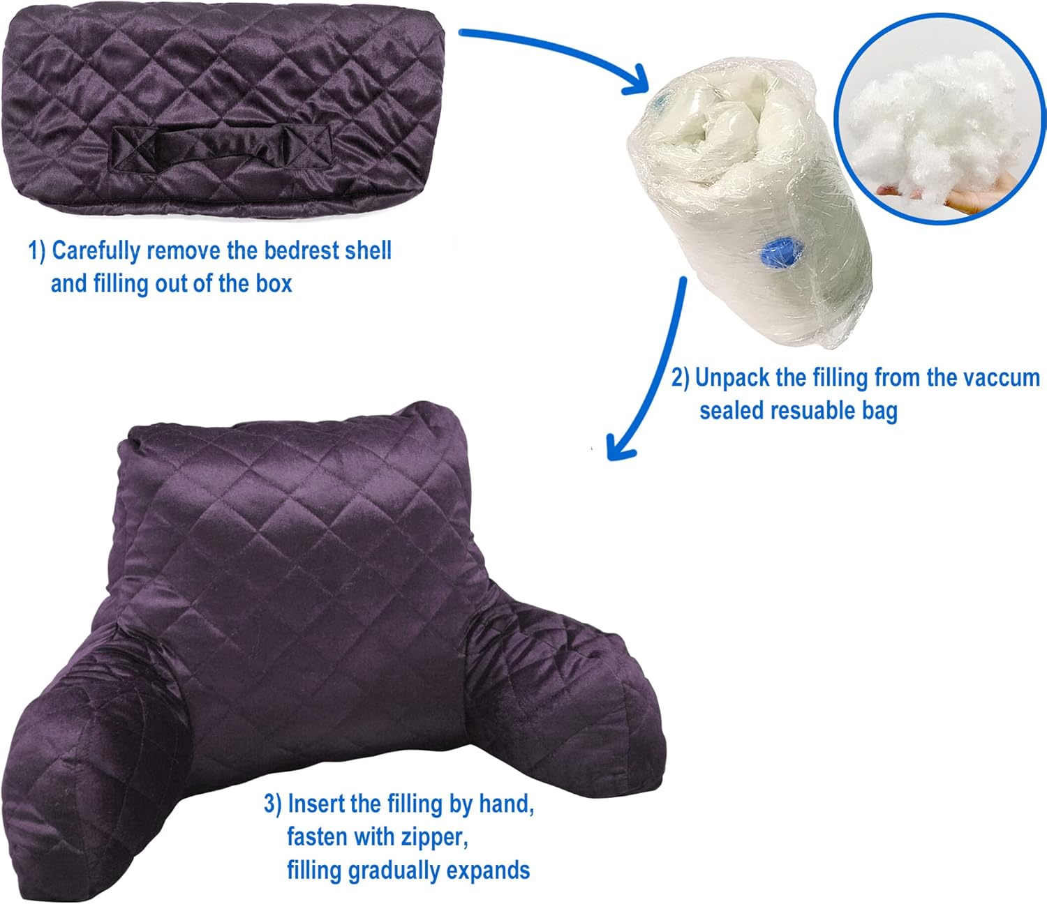 Take delight in the DIY filling that is packaged in a vacuum sealed, space-saving reusable bag. Bed rest shell is included in the box, ready to be filled. Easy fill directions create a fun DIY atmosphere and allow you to take pride in your new home addition. Include a personalized message, upon request. Shell is made of 100% Polyester Knitted Fabric and Filling is made of 100% Polyester Fiber. Each bedrest measures 20 in x 18 in x 17 in and is offered in solid colors.