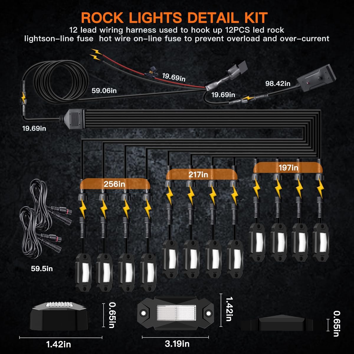 | Included Components | Pure White Rock Lights Kit 12PCS+Switch Wire Harness |
