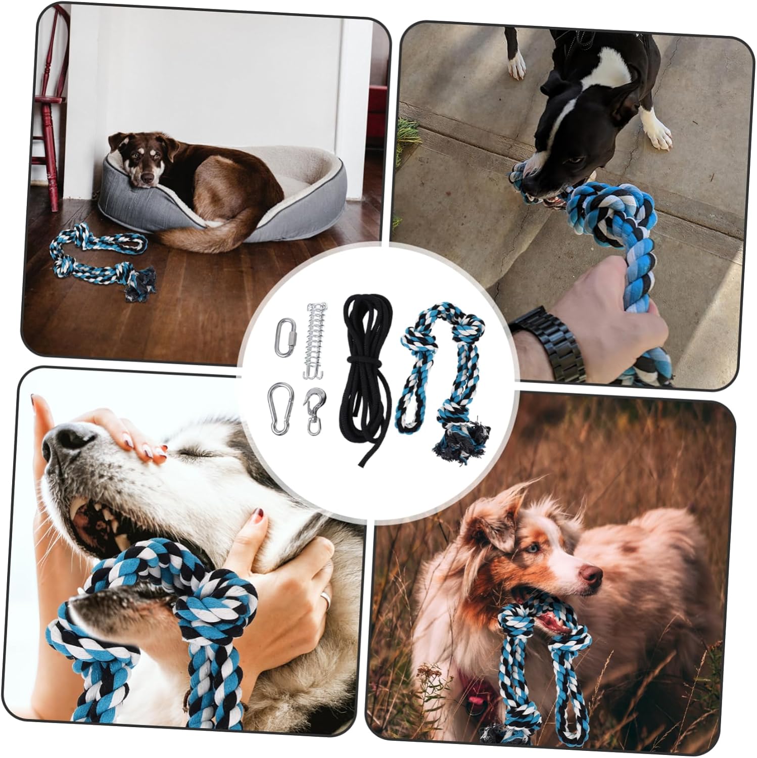 Package Include 1 x pet Characteristics - Size: About 99x15x5cm Dog Rope . - Material: Stainless steel and cotton rope Pet Exercise Rope. - ColorAssorted Color Dog Exercise Rope - Our spring pole is the muscle building exercise tool for dogs. Dogs love pulling, swinging, and tugging action that the spring pole provides Pet Spring Pole. - It is a exercise dog rope for your lovely pet dogs Dog Spring Pole . - Easy to use, we offer a 5M sturdy rope, You can it from a tree branch or wood beam under your deck, or wrap it around a tree. Loop it and pull it snug. Help you easily this sturdy spring pole dog rope in minutes Spring Pole for Dog. - The spring bar acts as a absorber, not a bouncy bungee jump. - Spring pole is made of rustproof stainless steel to last use.Goods DescriptionSpring Pole for Dog Our spring pole is the muscle building exercise tool for dogs.Dog Spring Pole This is a set of pet pull rope which is made of materials for durable playing.Pet Spring Pole Many dogs need of exercise, and dogs often like to go out and exercise