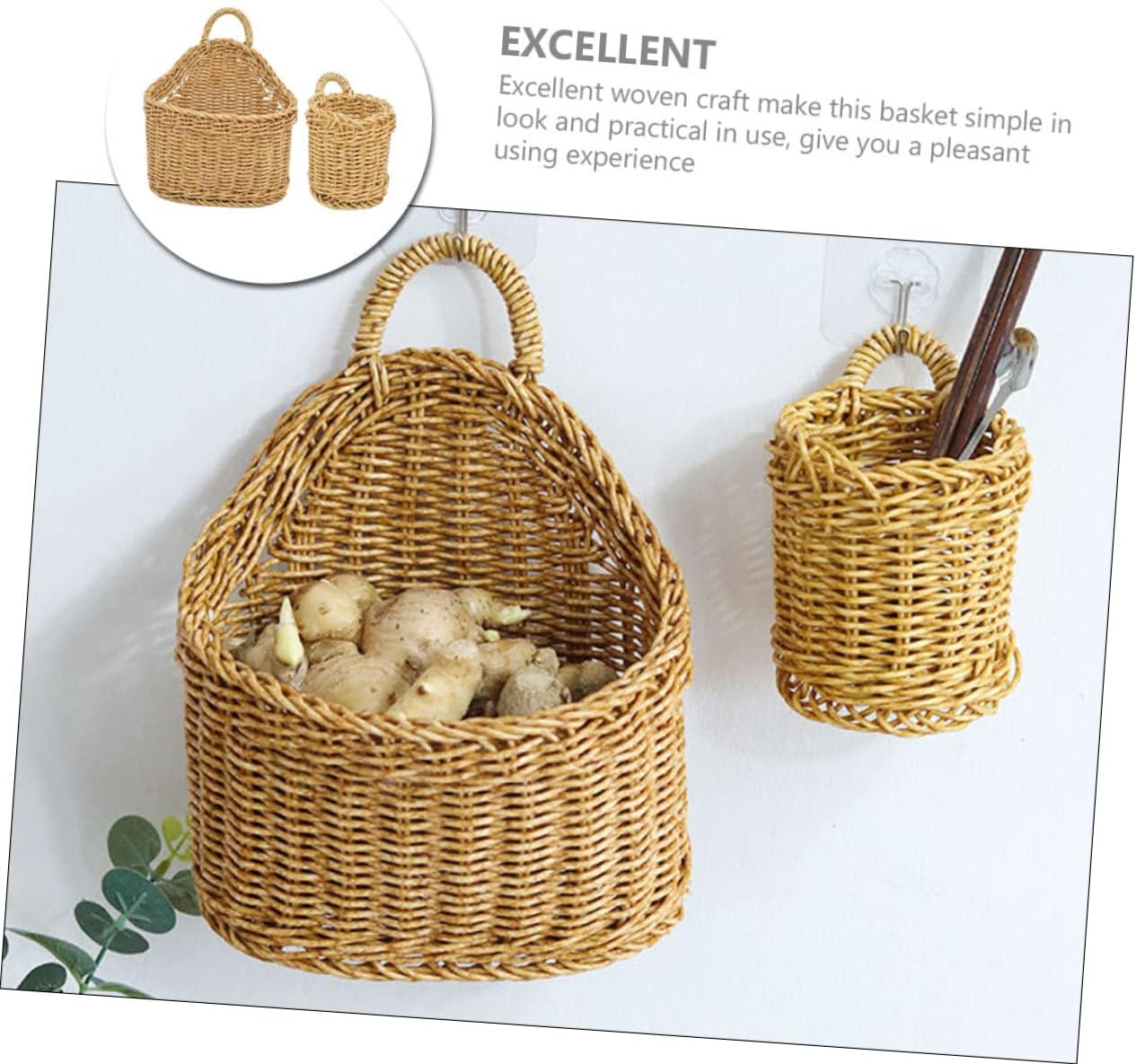 Package List 2 pcs x 1 × Large Size Storage Basket 2 pcs x 1 × Small Size Storage Basket Characteristics -Color:Light Brown woven storage baskets -Size:15.00X10.00X10.00cm/5.89X3.93X3.93in (S) kitchen basket -Material:Plastic wall hanging storage basket -Size:23.00X20.00X10.00cm/9.04X7.86X3.93in (L) woven baskets for storage - With fine craftsmanship, it looks beautiful and elegant, making your home in it seems more delicate kitchen woven basket. - With a reasonable structure and made from good materials, it can stably and perfectly hold the seasoning, fruits, vegetable and other items hanging woven basket. - Woven basket is great for holding fruit, candy, snacks, and other kitchen and household items woven wall baskets. - This plant hanger also can help you to decorate your wall, garden and other places. Fruit basket is also great for picnics, family storage baskets, and home decor basket for kitchen. - The wall basket can be used as a fruit hanging basket. the beautiful scenery of your home small wall basket.Goods Informationkitchen hanging basket Are you looking practical sundry organizer? This woven storage basket is specially prepared for you.woven wall hanging baskets This hanging basket is made of , which can be used for the long time.wall hung storage baskets Large-capacity to store your sundries, such as kitchen tool, sundries, etc