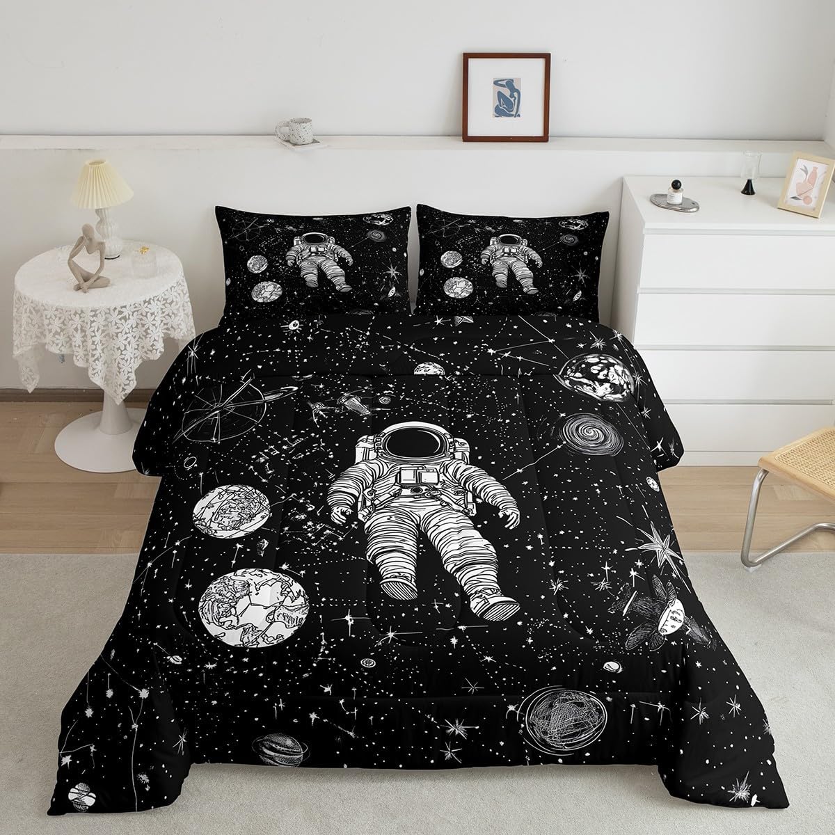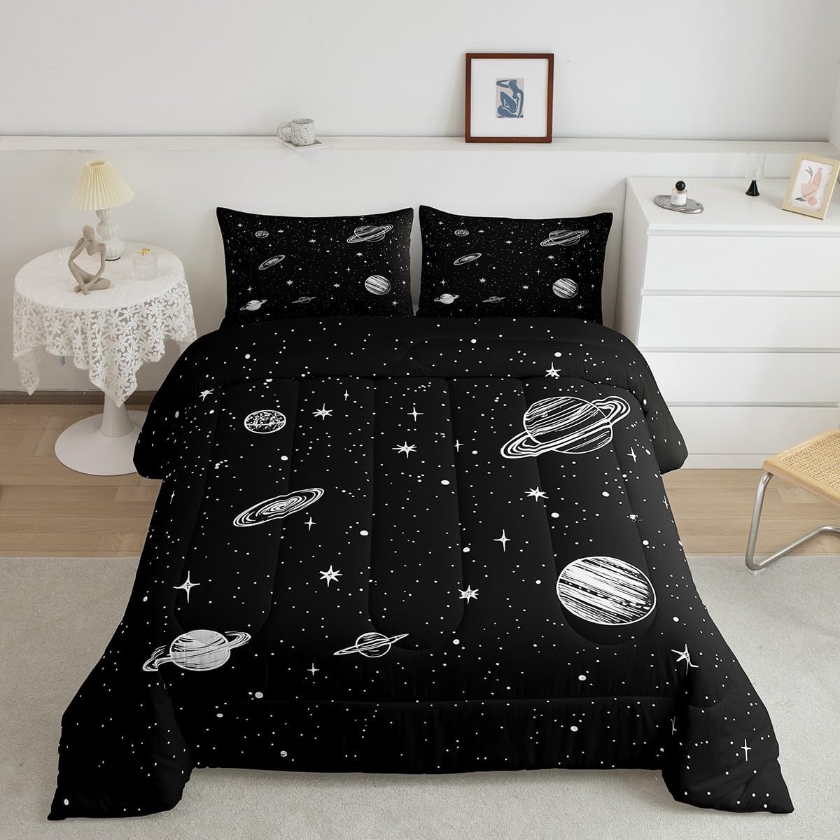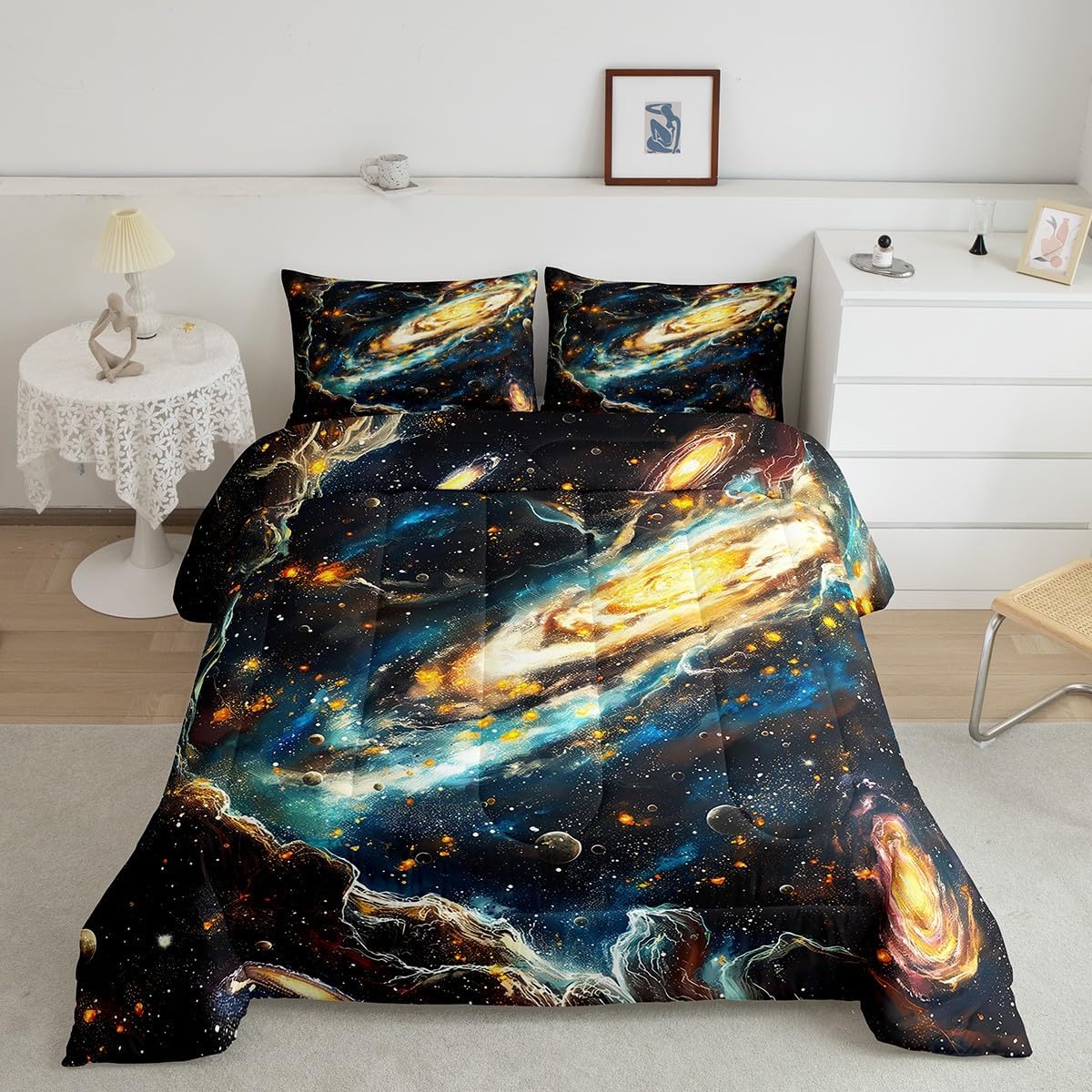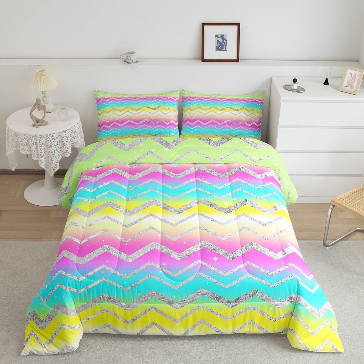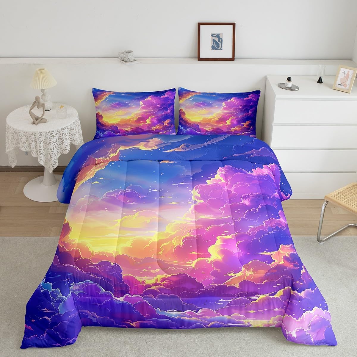 Package Include: Comforter and Pillowcase. Makeover your bedrooms every season with our Comforter sets. Perfect item for your room, girls boys youth room, master bedroom. Size Information: Toddler size down comforter 42"W x 58"L and 1 pillow case 30"W x 20"L. 2pcs with 1 Bed Comforter and 1 Pillowcases in A Bag Twin size down comforter 68" W x 90" L and 1 pillow case 30" W x 20" L. 2pcs with 1 Bed Comforter and 1 Pillowcases in A Bag Full size down comforter 79" W x 90" L and 2 pillow cases 30" W x 20" L. 3pcs with 1 Bed Comforter and 2 Pillowcases in A Bag Queen size down comforter 90" W x 90" L and 2 pillow cases 30" W x 20" L. 3pcs with 1 Bed Comforter and 2 Pillowcases in A Bag King size down comforter 104" W x 90"" L and 2 pillow cases 36" W x 20" L. 3pcs with 1 Bed Comforter and 2 Pillowcases in A Bag Useful and practical A luxurious product for homes, dorm rooms, hotels, guest rooms. Practical to use for being polyester, feels like cotton which is Super Soft and Breathable. No chemicals used, No dye substance harming the health of you or your family. Unique design: Vivid Colors won't fade thanks to new 3D digital printing methods. These unique designs match well with various color palettes of your rugs, curtains, headboard, furniture, and all other decor accessories. Personalized: As manufacturers of digital printed home textiles, we follow current trends and bring you the latest home fashion.