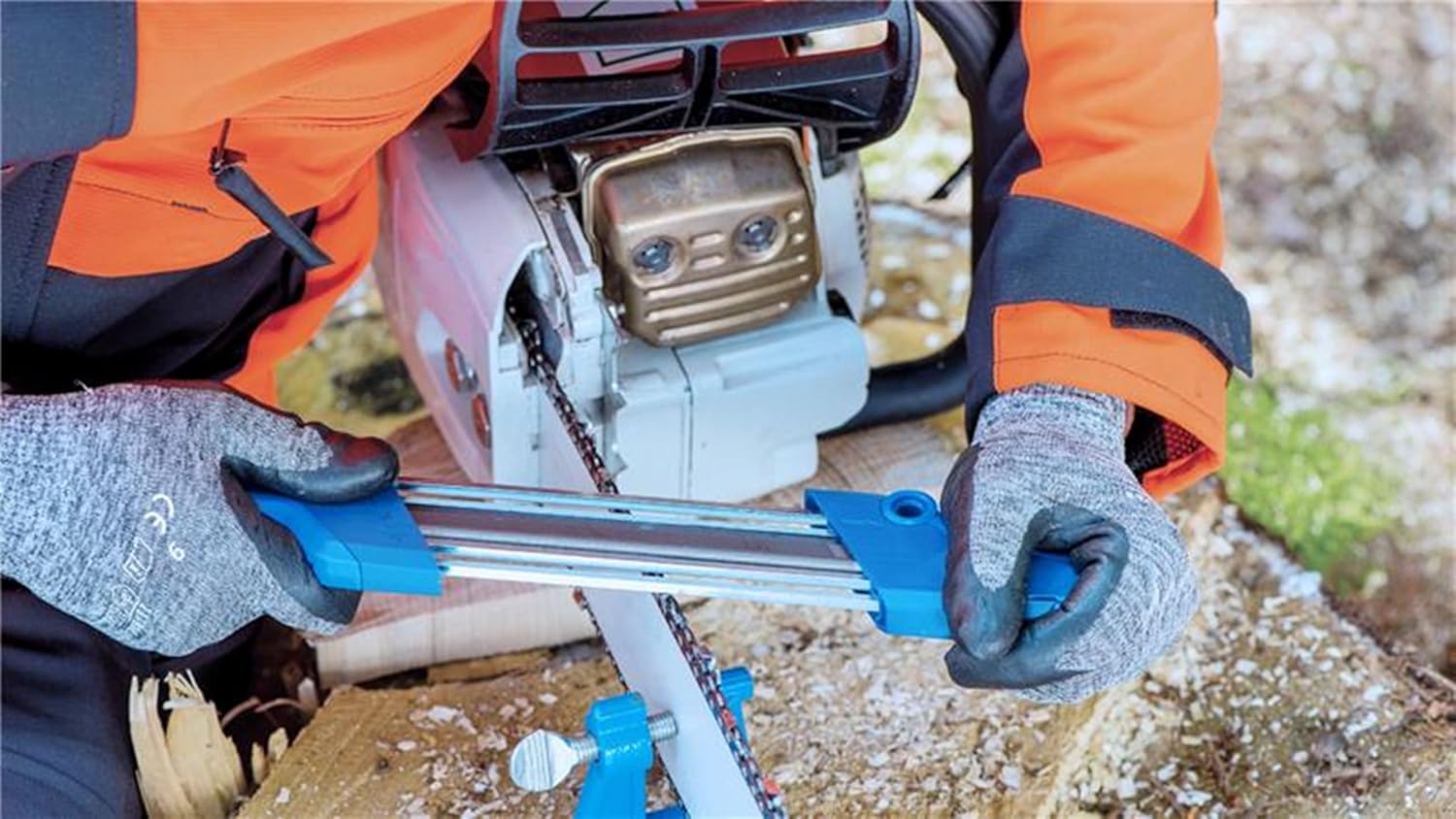 PFERD chain saw sharpener CS-X-3.2 // chain saw sharpener from PFERD are ideal for manual sharpening of saw chains. The chain saw sharpener Chain Sharp CS-X impresses with its stable file position, ergonomic device shape and easier handling. The device provides a sharpening angle of 30°. Contents: 1 x sharpener, 1 x depth limiter file, 2 x Classic Line chainsaw files, suitable for chain saw files, diameter: 3.2 mm, chain pitch: 1/4 inch low profile, depth limiter distance: 0.45 mm, drive type: hand use, workable materials: steels up to 1,200 N/mm2, processing tasks: sharpening, application recommendations: manual sharpening is economical and far away. more than machine sharpening and can extend the service life of the saw chain. Early resharpening reduces the need to remove less material and reduces the time required to sharpen significantly. Long service life of the devices by simply changing the files.