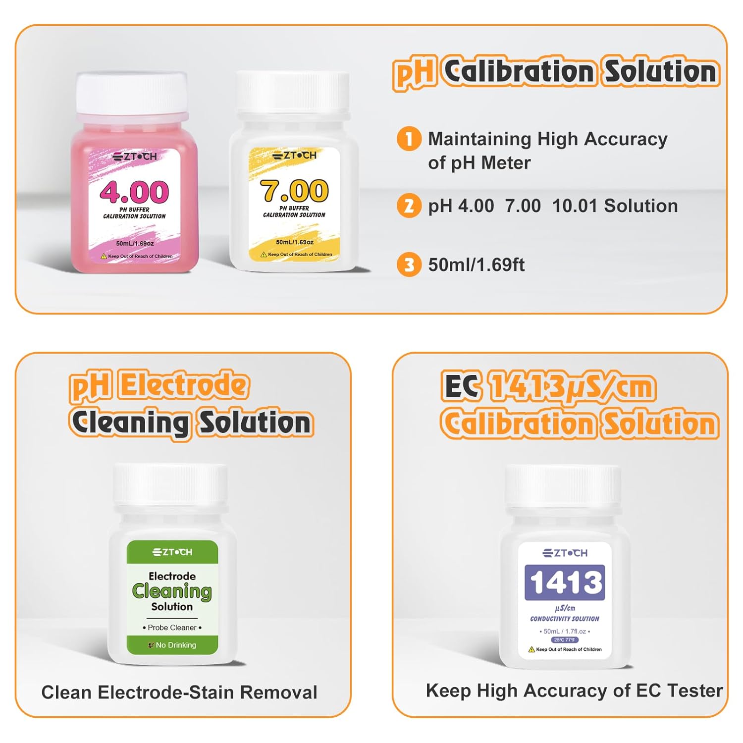 EZTOCH pH Meter for Water Hydroponic with Calibration Solution, 4 in 1 pH Meter with pH 4.0 7.0 & EC 1413μS/cm Calibration and Probe Cleaning Solution for Water, Pool, Aquarium, Fish Tank