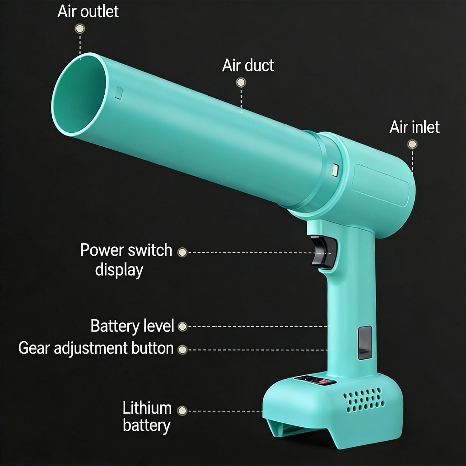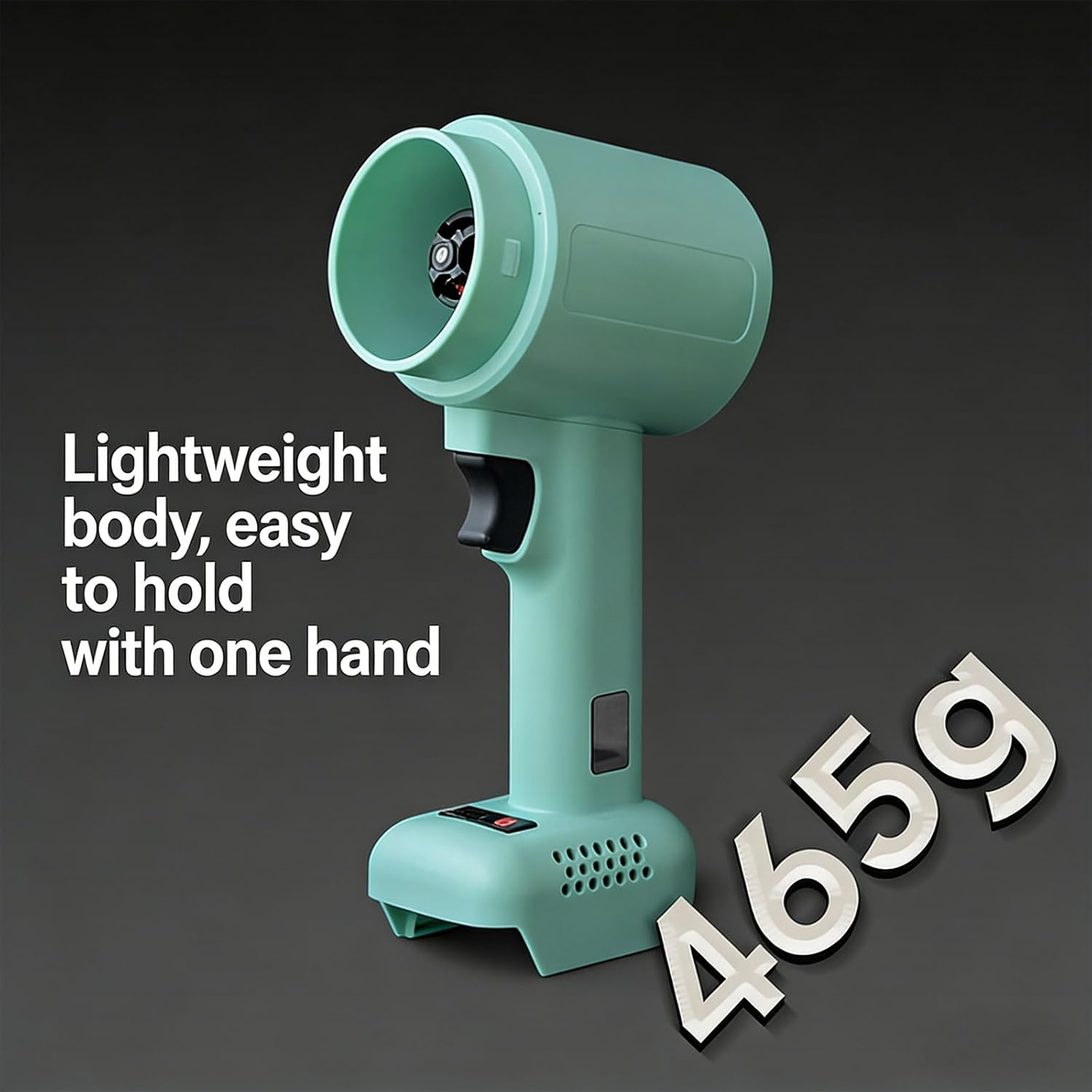Powerful 58m / s Blower Featuring Adjustable Speeds For Vehicle Washing And Outdoor Lightweight At Only 465g Features: Efficient Brushless Motor: Equipped with a 64mm aviation inspired brushless motor for consistent airflows Includes thermal security and enhanced load capacity High ventilation: Delivers up to 58m / s air movement with 1500g force for intensive applications Adjustable Settings & Battery Monitor: Features four customizable modes for precise ventilation control Built in power display enables real time battery condition tracking for uninterrupted workflow management Lightweight Comfort Design: Weighing only 465g ( without battery) for easy single handed use Contoured shape reduces fatigue during extended action, making it suitable for prolonged Secure Attachment structure & Mesh: Includes tool nozzle installation and reinforced front barrier to foreign object entry Low noise design maintains effectiveness while prioritizing user comfort for optimal Specifications: Product name: Portable handheld hair dryer cyan bare machine ( batteries not included) substance: ABS Size: as shown in the size chart Technical parameters: evaluated potential 21V | Four | greatest wind 58m / s | greatest thrust 1600g | Net weight about 465g ( excluding battery) | Total bare metal weight about 1030g ( including hairdryer) | Low noise design Usage scenarios: Car washing and water blowing, courtyard leaves, snow removal, and engineering work blowing Package Includes: Portable handheld hair dryer cyan bare machine ( batteries not included) Note: Pay attention to the storage methods
