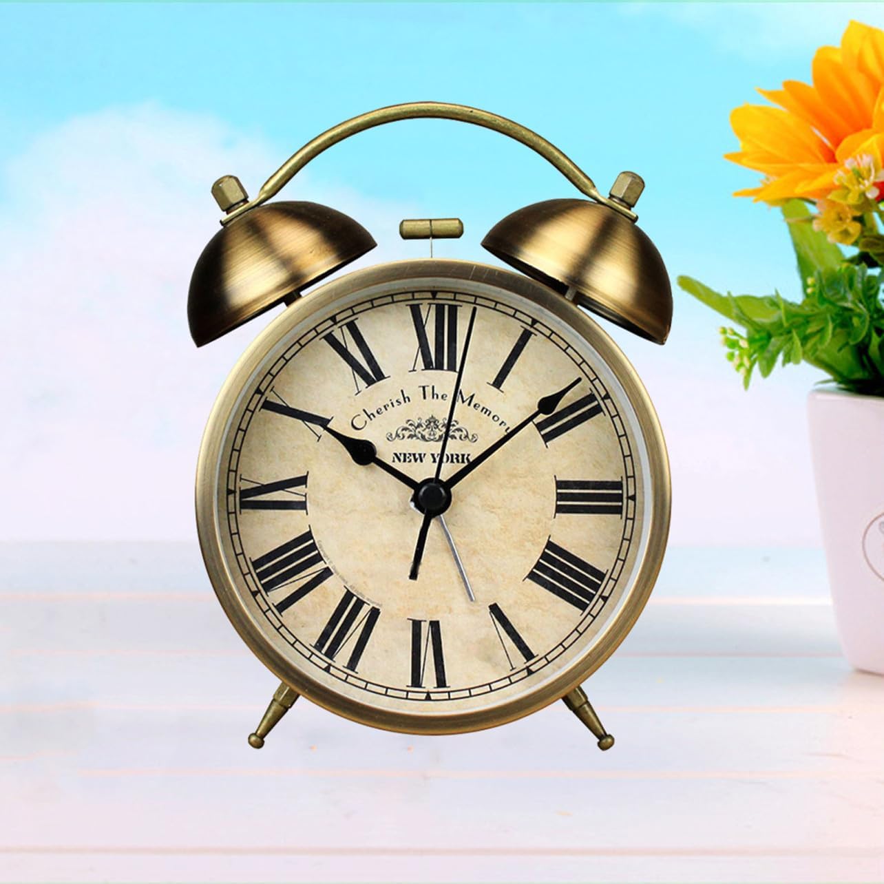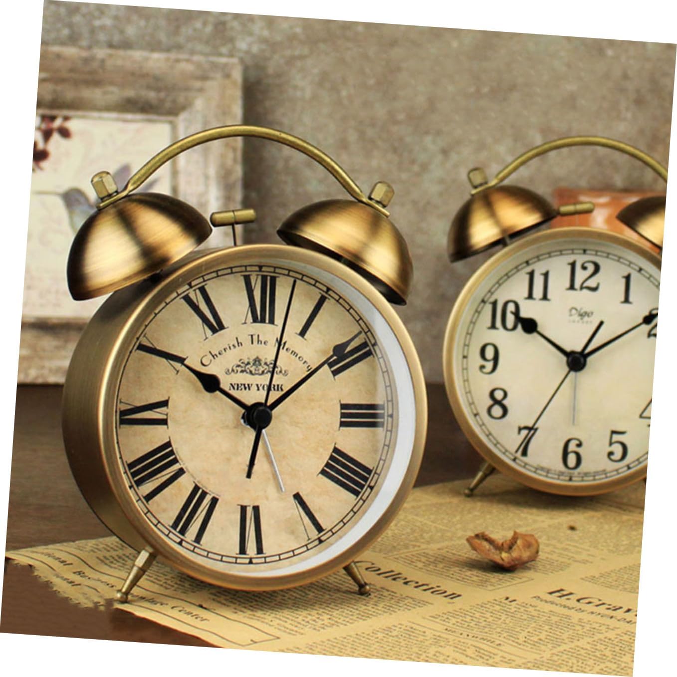 Package List 1 x clock Features - Material: Metal and glass. - Size: About 10.9 x 5.2 x 15cm. -Product Info:Retro alarm clock - Loud alarm clock for people who are heavy sleepers, mild loss hearing even deaf small alarm clock. - Silent with non-ticking hands, nice for a good working and learning environment, also for a soothing sleep decorative desk clock. - No , good wake up clock for people who has trouble waking up loud alarm clock. - It suitable for home, bedroom, office etc non ticking alarm clock. - Goods Informationretro alarm clocks for with the white hour and minute hands with perfect accuracy offer an awesome clearly legible look.alarm clock Retro appearance design makes this clock a good decoration for your home and bedroom etc.alarm clock retro Neat dial with stereoscopic numbers instead of printed cardboard found in common market.Desktop Bell Clock This product is a bell small clock, which made from material for and use