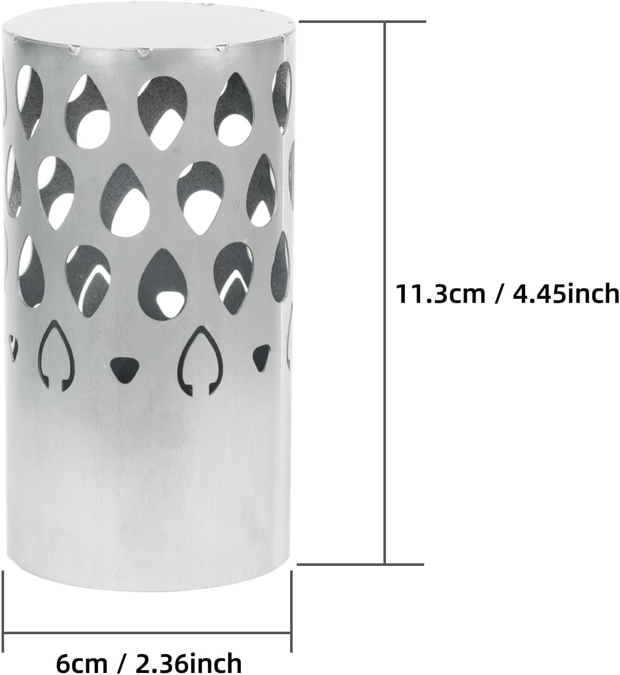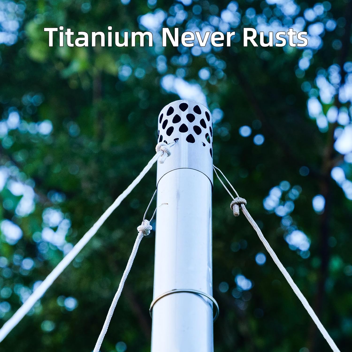Product Specifications: Product Name: Titanium Spark Arrestor Type: Spark Arrestor Weight: 44g / 1.55oz Carrying Weight: 48g / 1.69oz Size: Φ6x11.3cm / Φ2.36x4.45inch Material: Titanium Diameter: 6cm/2.36inch Included Items: Spark Arrestor x1, Stove pipe fixing pull ring x3.