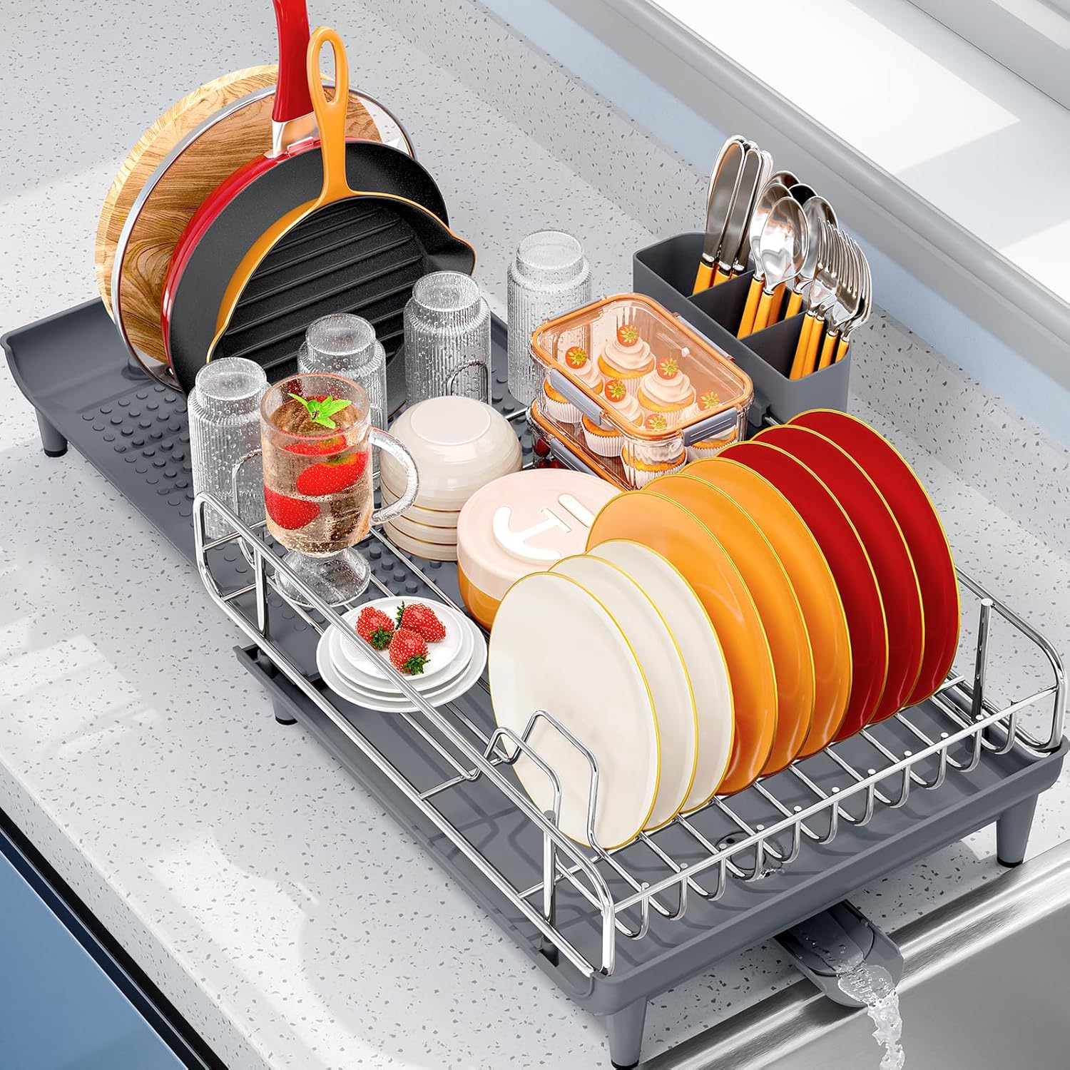 | Item Type Name | TOOLF Expandable Dish Rack, Dish Drying Rack for Kitchen Counter, Foldable Dish Dryer Rack, Stainless Steel Dish Drainer Racks with Cutlery Holder, Collapsible Dish Drying Racks Large Size,Gray |