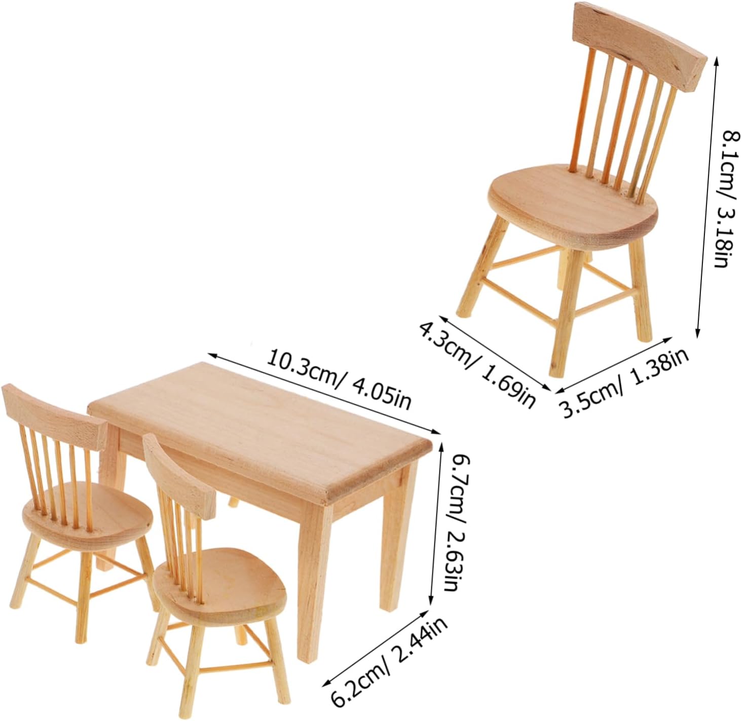 Package Include 1 x Doll House Table Decor 4 x Doll House Chair Decors 11 x Doll House Food Decors Characteristics -Material:Resin Doll House Mini Furniture -Color:Assorted Color Doll House Mini Chairs -Size:10.30X6.70X6.20cm/4.05X2.63X2.44in (table) Doll House Tiny Table -Size:8.10X4.30X3.50cm/3.18X1.69X1.38in (chair) Mini Chairs - It can also be placed in the bedroom as an ornament to make your room no longer so monotonous Doll House Furniture. - Not easy to deform, smooth surface without impurities, miniature table and chair feel comfortable to use Miniature Furniture Model. - Multi-purpose and wild range of application, can be used for miniature life scene decor, DIY work, etc Doll House Mini Table. - This is a accessory decoration for mini house. You can use it yourself or present it to your friends Doll House Miniature Furniture. - The miniature table and chair with food model ideal for doll house or micro landscape decoration Miniature Chairs.Goods DescriptionDoll House Mini Chairs Mini and lightweight, reasonable size, easy and convenient to place and decorate.Doll House Tiny Chairs This is a miniature furniture decor, which is made by resin, vivid and decorative, exquisite and compact size.Mini House Furniture Meanwhile increase the unique decor for your mini house