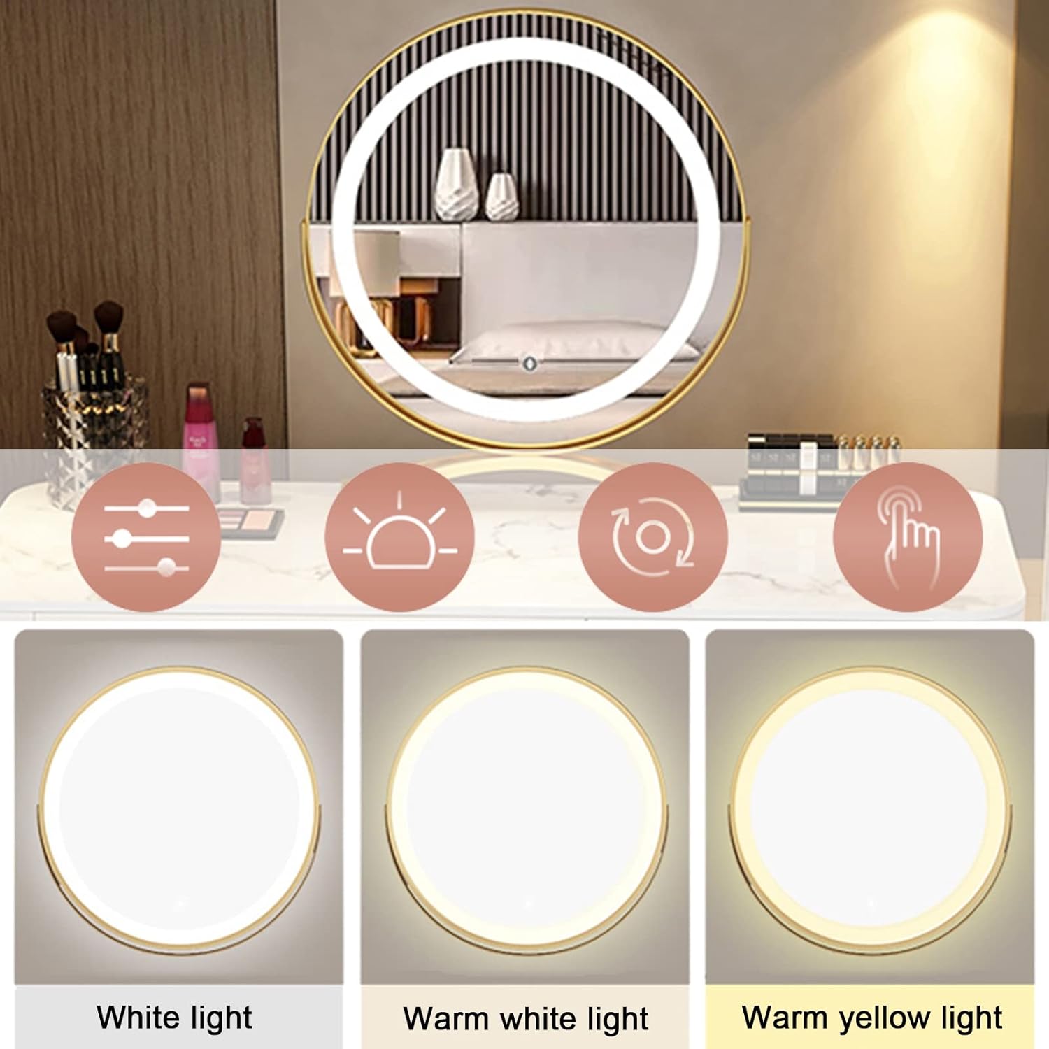 Welcome to YVYKFZD store, where we have a variety of vanity desk, this is definitely your ideal choice for shopping!▶ The dressing table set with LED is a perfect addition to your bedroom decor and also keeps your cosmetics close at hand! Extra table area provides more space for storage.▶ The 3 drawers which are good for organising your daily essentials are equipped with silent runners. Filled with the high elastic sponge, the seat cushion is soft and not easy to collapse. It will relieve your fatigue after work and bring you with long-lasting comfort. ▶ Also, there is one storage cabinet provides enough space for your makeups, jewelry and other decorations. It is a good furniture to place your bedroom.Product Details:- Product Name: Dressing Table Set- Main Color: White, Gray- Material: MDF- Table Dimension: L80cm/31.4in, L100cm/39.3in, L120cm/47.2in- Style: simple, modern, stylish- Assembly Required: Yes- Additional function: Movable- Applicable Audience: Girls/WomenPacking list:- 1 x dressing table- 1 x mirror- 1 x stoolAfter Sales Protection:* Due to factors such as shooting technology, light, and display parameters, the actual received color may have a color difference from the photo, please refer to the actual product!* If you have any questions, please feel free to contact us. We will provide you with the highest quality service.
